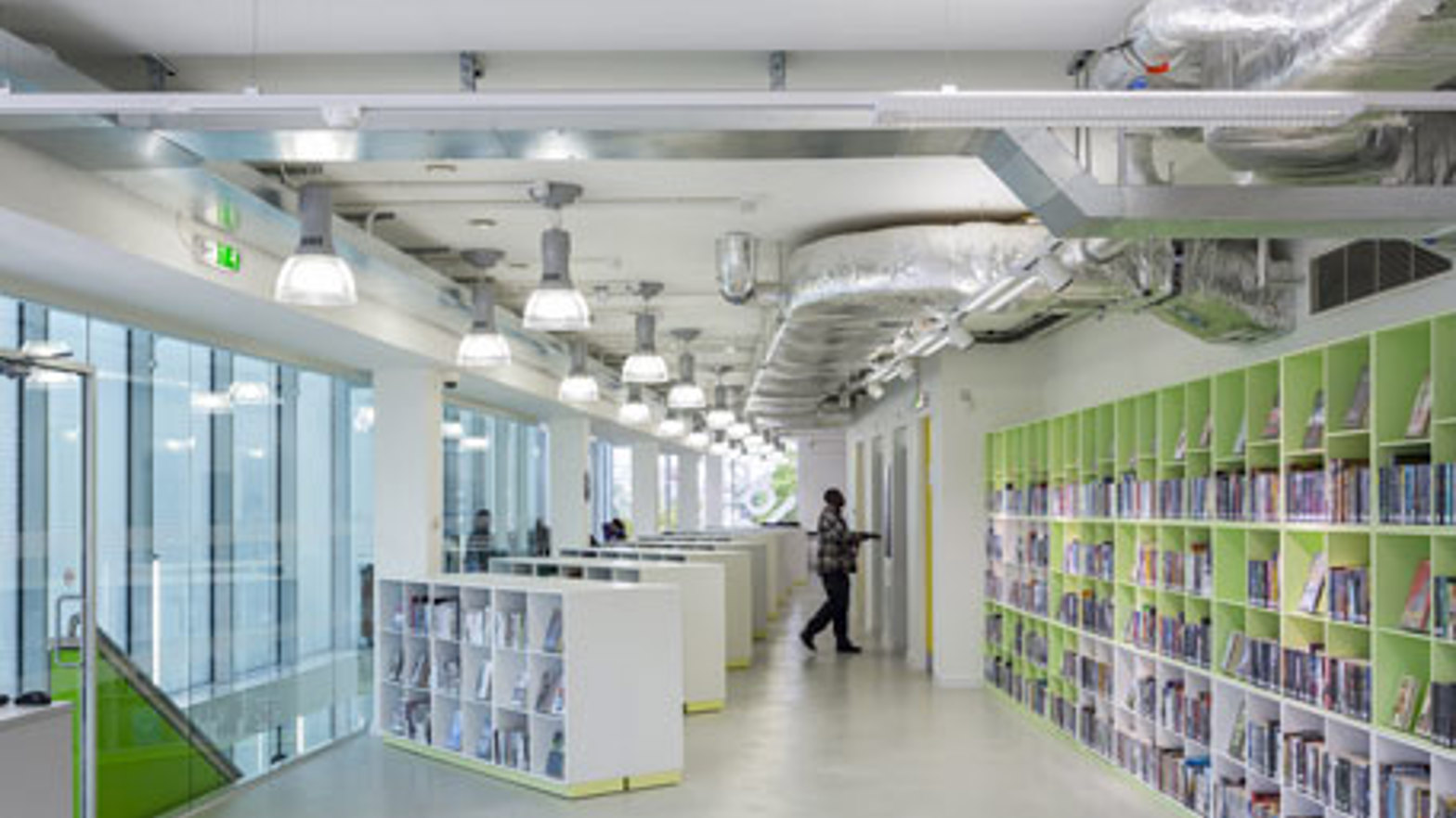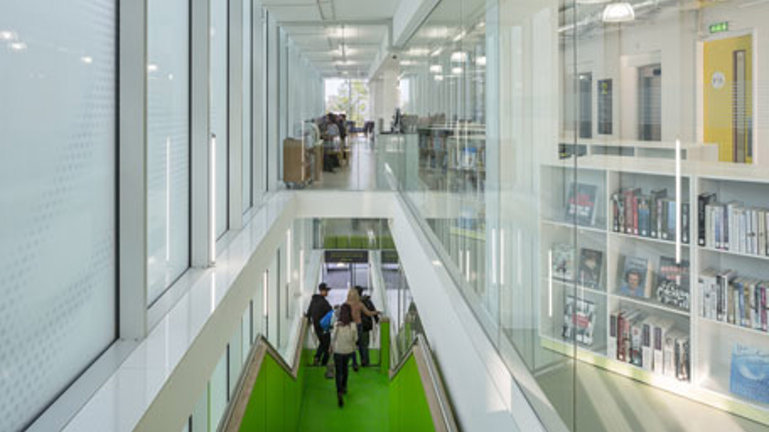 Based on three floors, the library is based on the concept of a āmarketplace of informationā with the library and council services as well as a range of partners for the council, offering services with the aim of providing benefits for the local people targeted in the areas of health and employment.