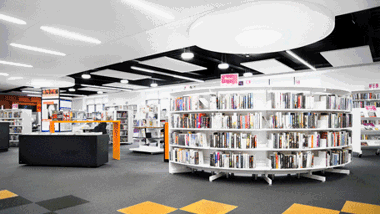 Thedesignconcept was instrumental in the design of this library together with the flooring, lighting and graphics to ensure the delivery of a cohesive design, working closely with the architects Holmes Miller and members of the library staff.