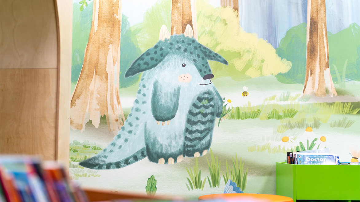 Three key areas formed the focus of the refurbishment: the ground floor, the imagination space, and the literacy centre. Throughout these zones, essential design elements such as colour detailing, wayfinding signage, graphics, and biophilic features were introduced to create a warm, welcoming atmosphere.