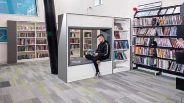 Using our Everna™ system we designed an updated modern facility to include shelving to promote browsing and borrowing, study places, reading dens, and cosy nooks.