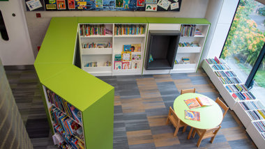 The Everna™ system incorporated a double-width window seating den and a single den integrated into the shelving. Whilst maintaining sightlines, the large den designates the space and provides a feeling of ownership, separate from the main library.