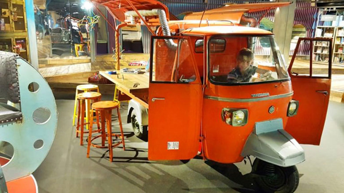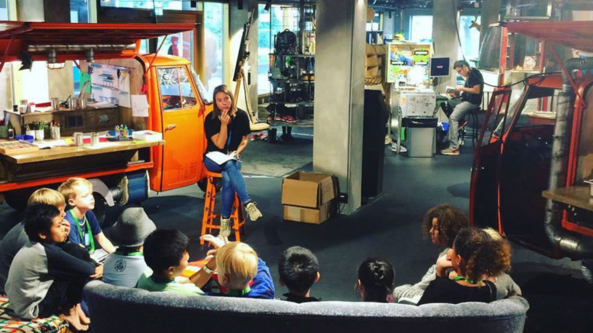 It may be surprising when we say this, but we don’t have an educational purpose. Our job is to inspire the kids, make them feel competent, show them things they didn’t knew existed. They don’t have to do anything if the don’t want to, they can also just come and hang out with a friend. But hopefully they’ll be hooked on some new things while they’re here! We want them to have a great experience. It’s nice to sit inside the engine compartment of a truck and read books, or play chess with your friend inside a ski elevator, or relax on a sofa watching movies!