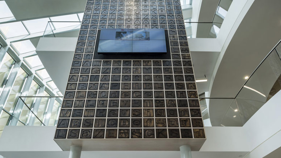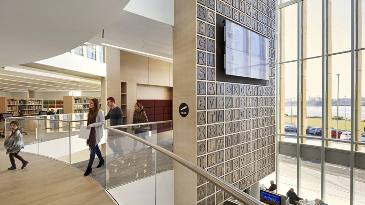 Internally, a large central atrium gives visual clarity to the scheme, allowing a grand gesture of civic quality to link all of the internal activities. The Wordâs design is truly transformative in every sense. It not only helps to transform the character of the site and context, but also helps to transform a visitorâs perception of what a library can be and how it can form part of a larger cultural venue of regional and national significance.