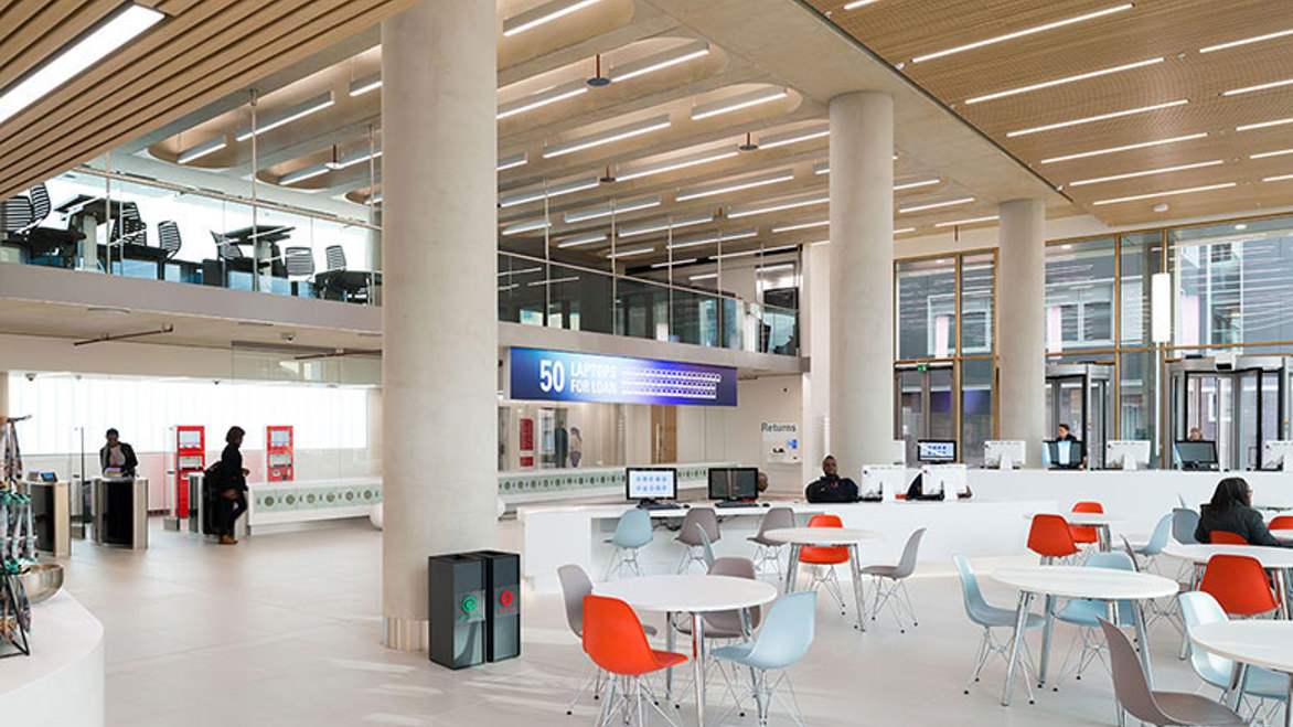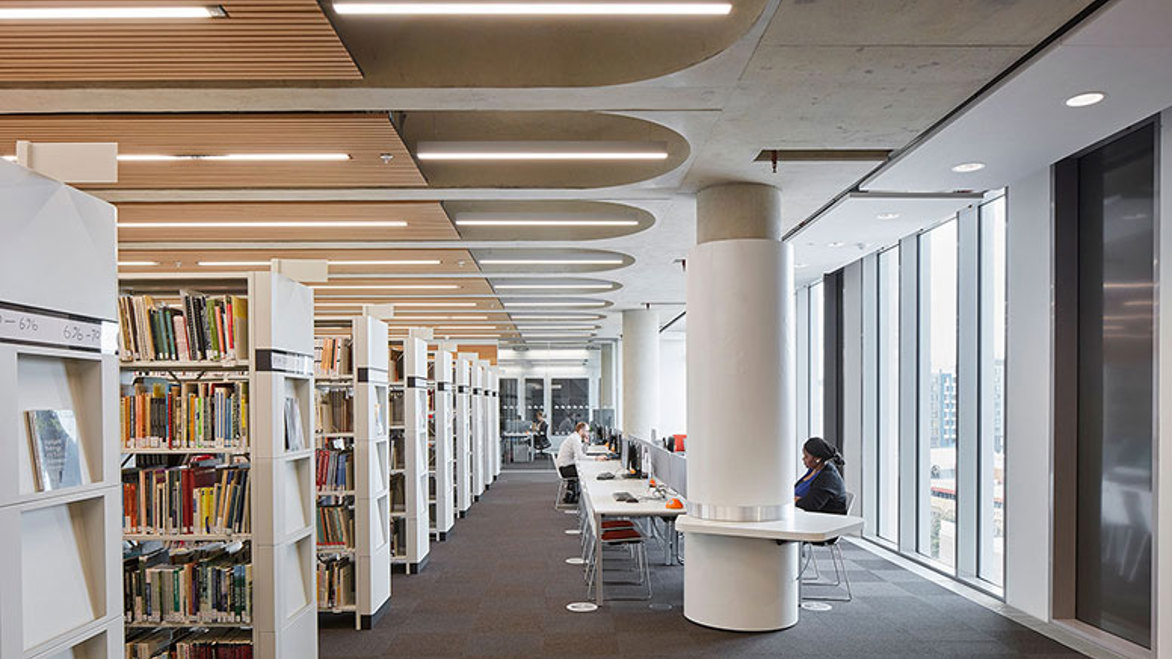 Open 24/7, the building reflects the University’s aspiration for an efficient, serious and scholarly facility that supports and enables improvements in academic and institutional performance.