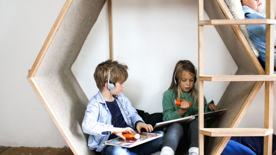 Learning Honeycombs are modular retreat spaces designed for studying, working, or quiet reflection